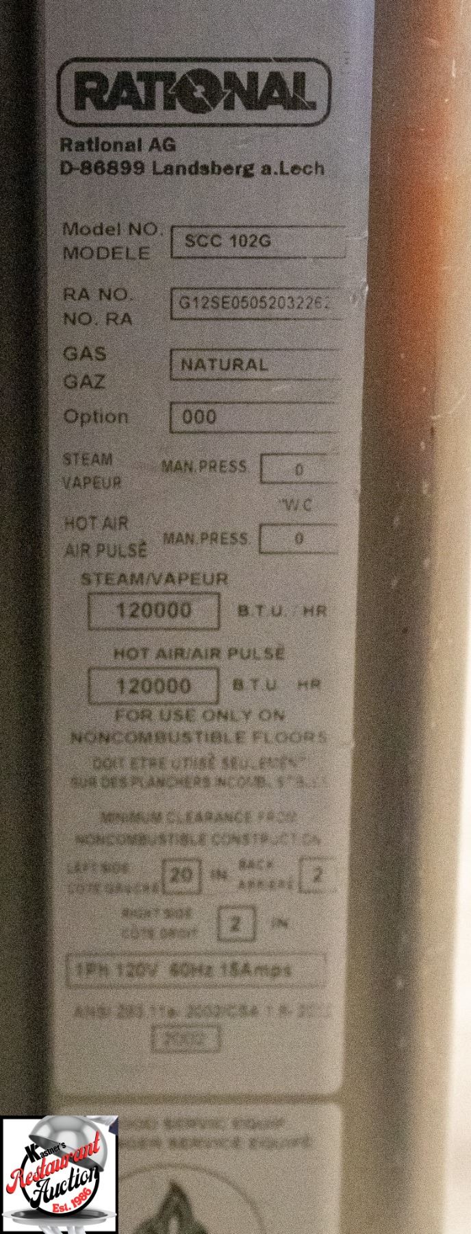 MODEL # SCC102G, STEAM BTU / HER INPUT 120000, HOT AIR BTU / HR INPUT 120000, PAHASE 1, 120 VOLTS, 60 HZ, 16 AMPS 42" X 37" X 68"