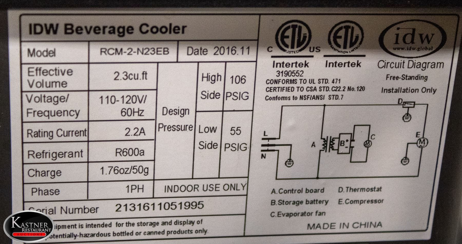 MODEL # RCM-2-N23EB, 110-120 VOLTS, 60 HZ, 2.3 AMPS, PHASE 1 22" X 16.5" X 42"