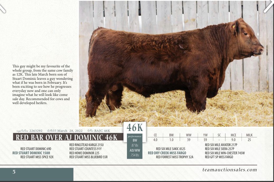 This guy might be my favourite of the whole group, from the same cow family as 12K. This late March born son of Stuart Dominic leaves a guy wondering what if he was born in February. It’s been exciting to see how he progresses everyday now and one can only imagine what he will look like come sale day. Recommended for cows and well developed heifers.