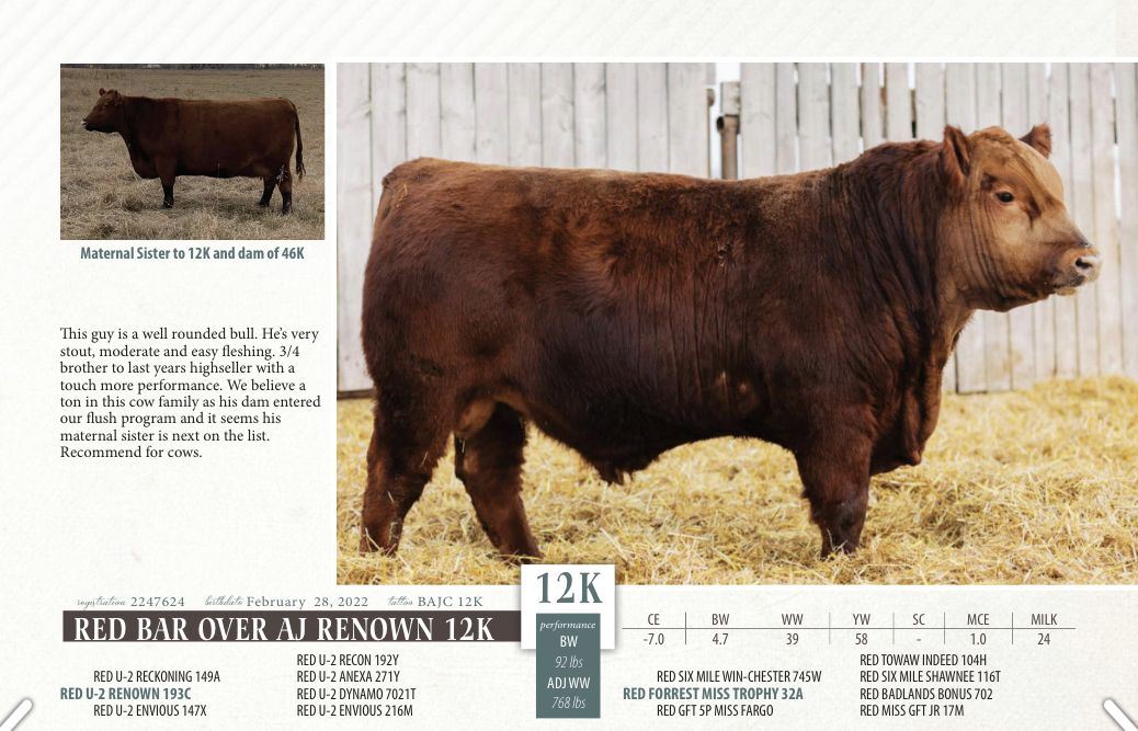 This guy is a well rounded bull. He’s very stout, moderate and easy fleshing. 3/4 brother to last years highseller with a touch more performance. We believe a ton in this cow family as his dam entered our flush program and it seems his maternal sister is next on the list. Recommend for cows.