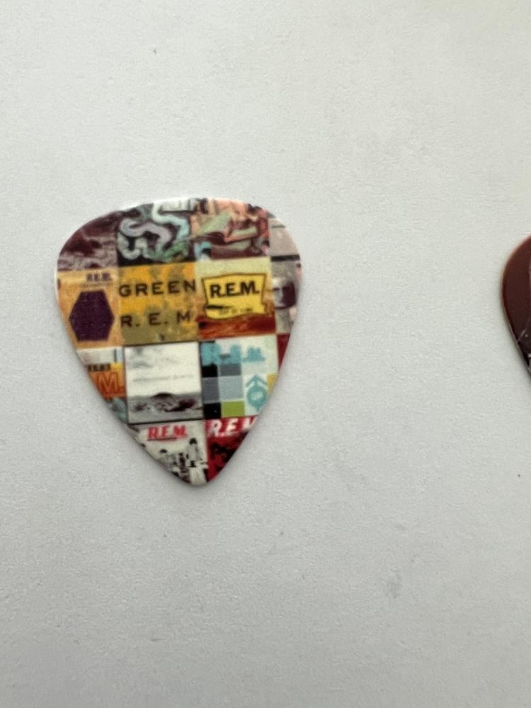 REM guitar pick. 1x1 inch