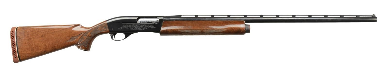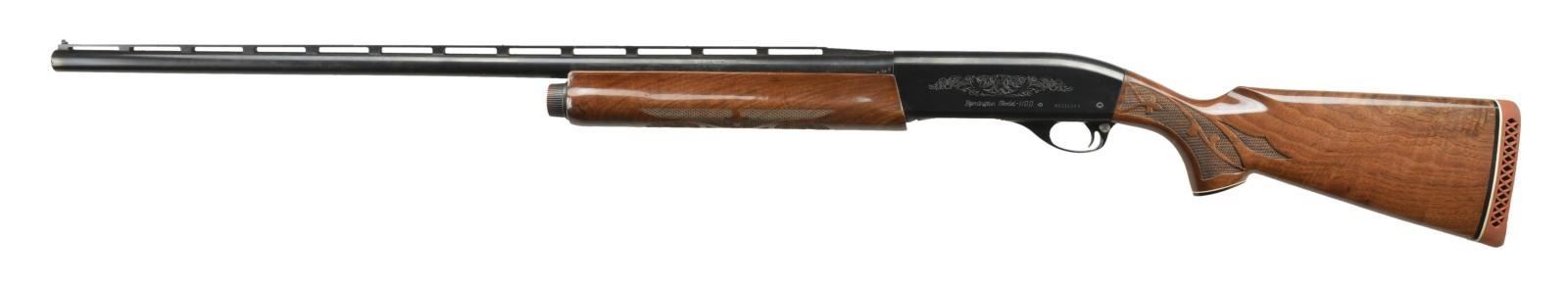 Cal. 12 Ga., 2 3/4". S# M831634V. Bbl. 30" VR w/ White target front sight & steel mid bead. Fixed Full choke. Blue finish. Walnut forearm & pistol grip stock w/ gloss finish, pressed checkering & Remington buttpad. CONDITION: very good overall w/ light marks & oxidation near muzzle. Good bore w/ fouling. (22-1967/MD). MODERN. $400-600.