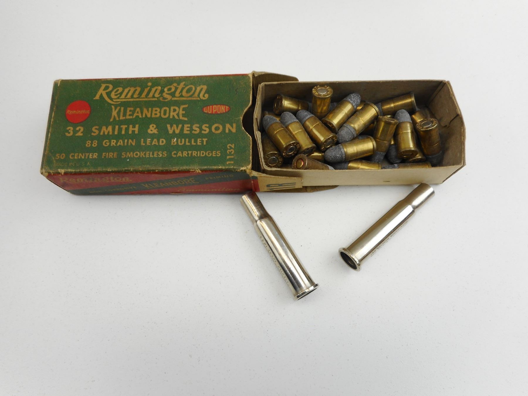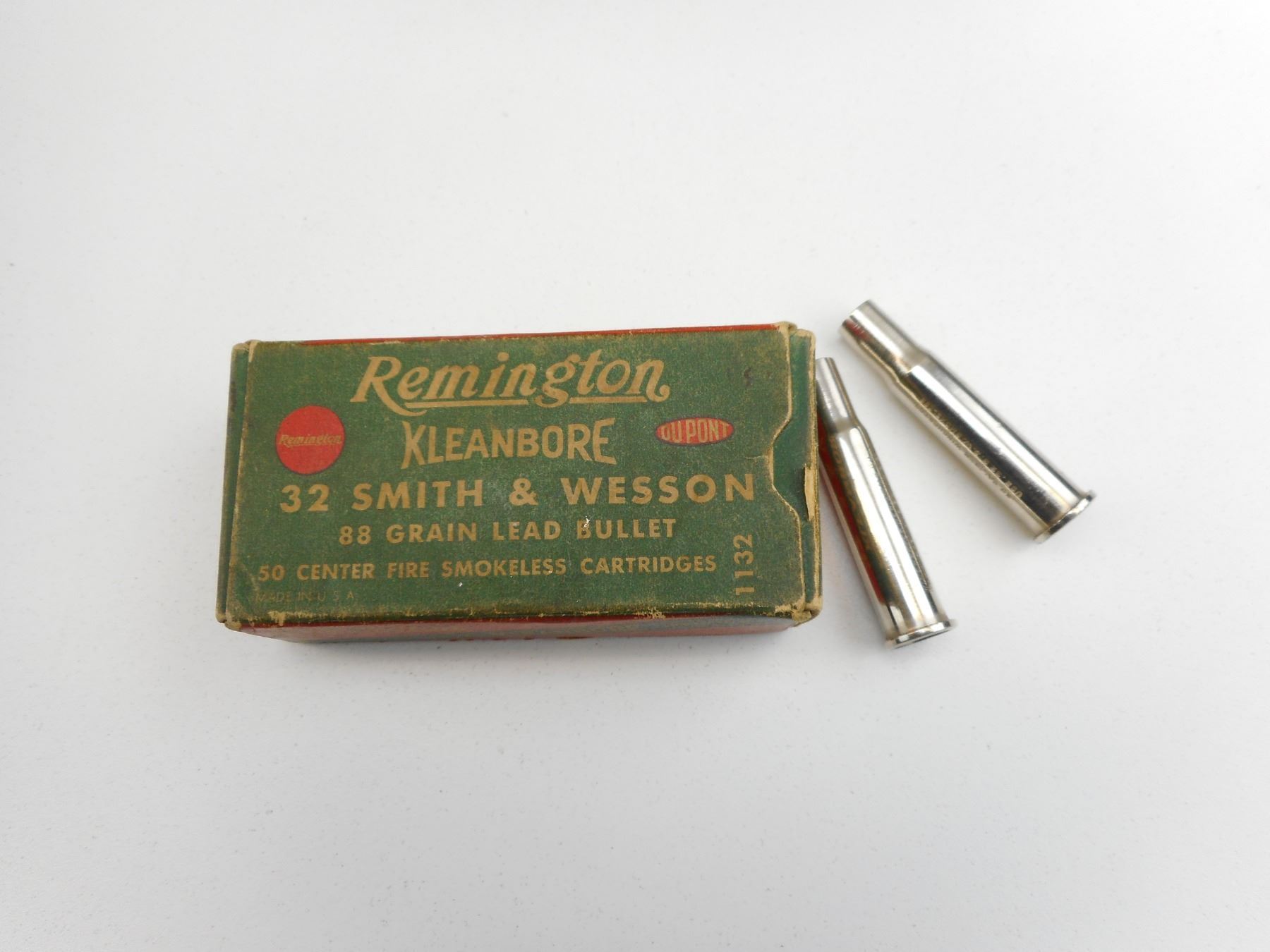 REMINGTON .32 SMITH & WESSON AMMO, 2 30-30 CHAMBER ADAPTORS , 26 RNDS REMINGTON .32 SMITH & WESSON AMMO, INVINTAGE BOX, 2 30-30 ADAPTORS