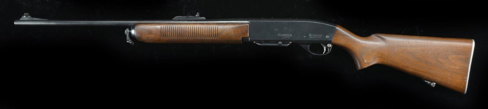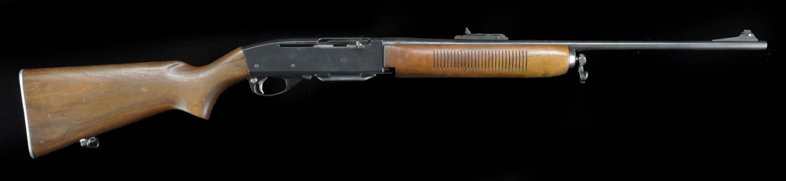 Cal. 308 Win. S# 41035 ("LH" = Feb. 1961). Bbl. 22" w/ ramp mounted brass bead front sight & ramp mounted sporting rear sight. Receiver drilled & tapped for scope mts. Grooved forearm & pistol grip walnut stock w/ satin finish & checkered aluminum buttplate. Rifle has QD swivels. MAGS: 1 - 4 rd. CONDITION: Good overall. Metal finish has marks & pinprick oxidation w/ light faded finish on mag. Stock has 2" split from both sides of wrist by receiver. Forearm has 3" crack on bottom. Wood finish very good w/ scattered moderate marks on buttstock. Very good bore. (22-1926/MD). CURIO. $300-450.