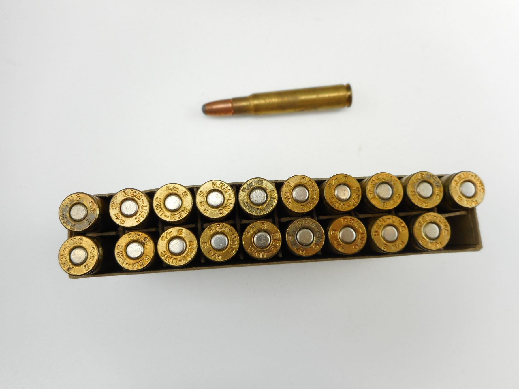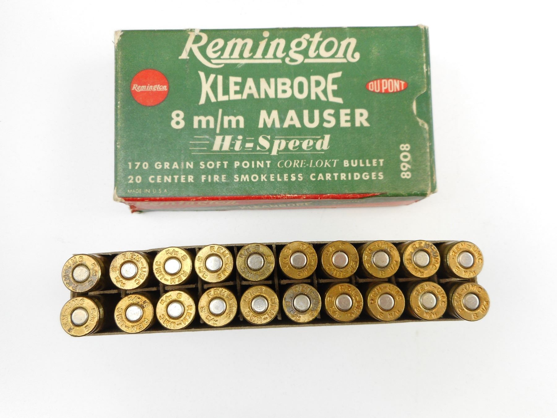REMINGTON 8MM AMMO , 20 RNDS 8MM AMMO, IN VINTAGE REMINGTON BOX