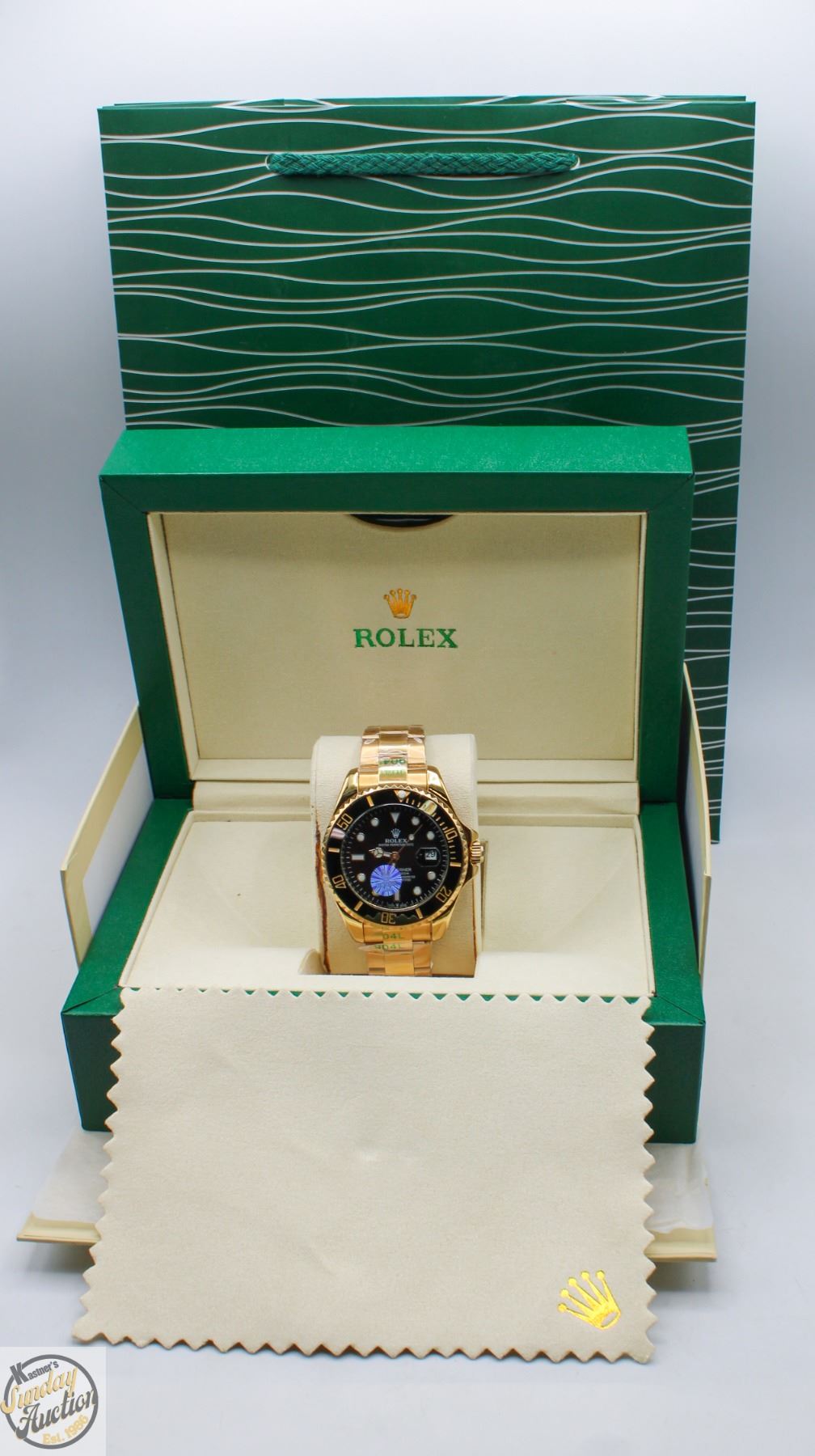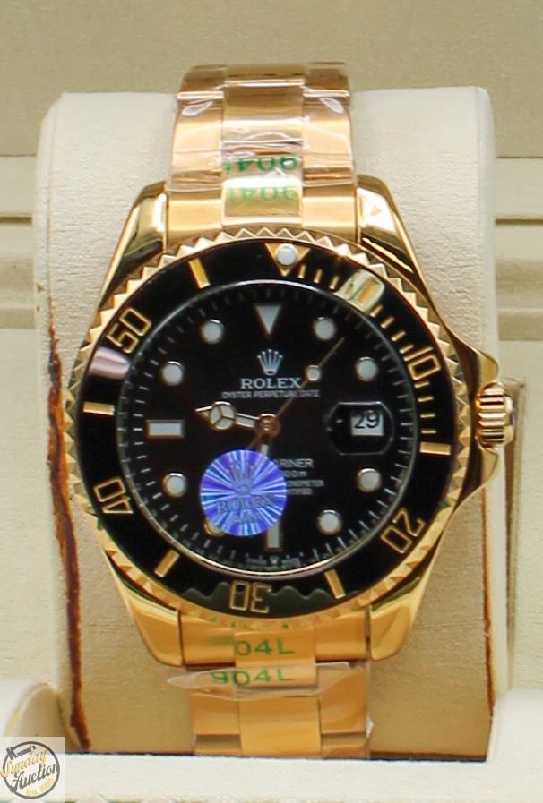 REPLICA WATCH, BLACK DIAL WITH GOLD CASE AND CROWN, 904L STAINLESS STEEL CASE (THE SAME STEEL USED IN AUTHENTIC ROLEX WATCHES). BLACK OYSTERFLEX BRACELET. FULL SET WITH BOX, PAPERS AND BAG. **ALL ITEMS MUST BE REMOVED BY 5PM SATURDAY, JANUARY 10TH 2026. ALL REMAINING ITEMS WILL BE SUBJECT TO A $6.00 PER DAY STORAGE CHARGE. ANY ITEMS REMAINING AFTER MONDAY, JANUARY 26TH 2026 WILL BE CONSIDERED FORFEITED. NO REFUNDS WILL BE ISSUED FOR FORFEITED ITEMS. TO SCHEDULE A PICK UP APPOINTMENT CLICK HERE