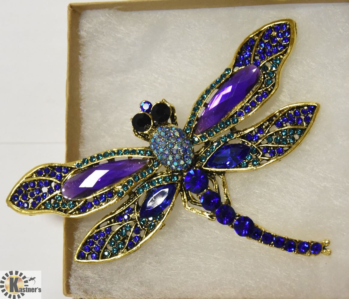 RHINESTONE DRAGONFLY BROOCH (BLUE & PURPLE)