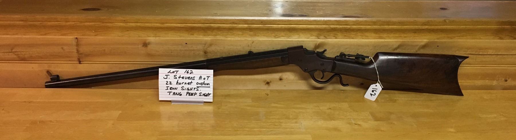J. STEVENS, MODEL NONE, .22 HORNET CUSTOM, S/N 58720, LEVER, FALLING BLOCK, W/TANG PEEP SIGHT, CONDITION GOOD - VERY GOOD, HAS BEEN RE-BARRELLED TO 22 HORNET
