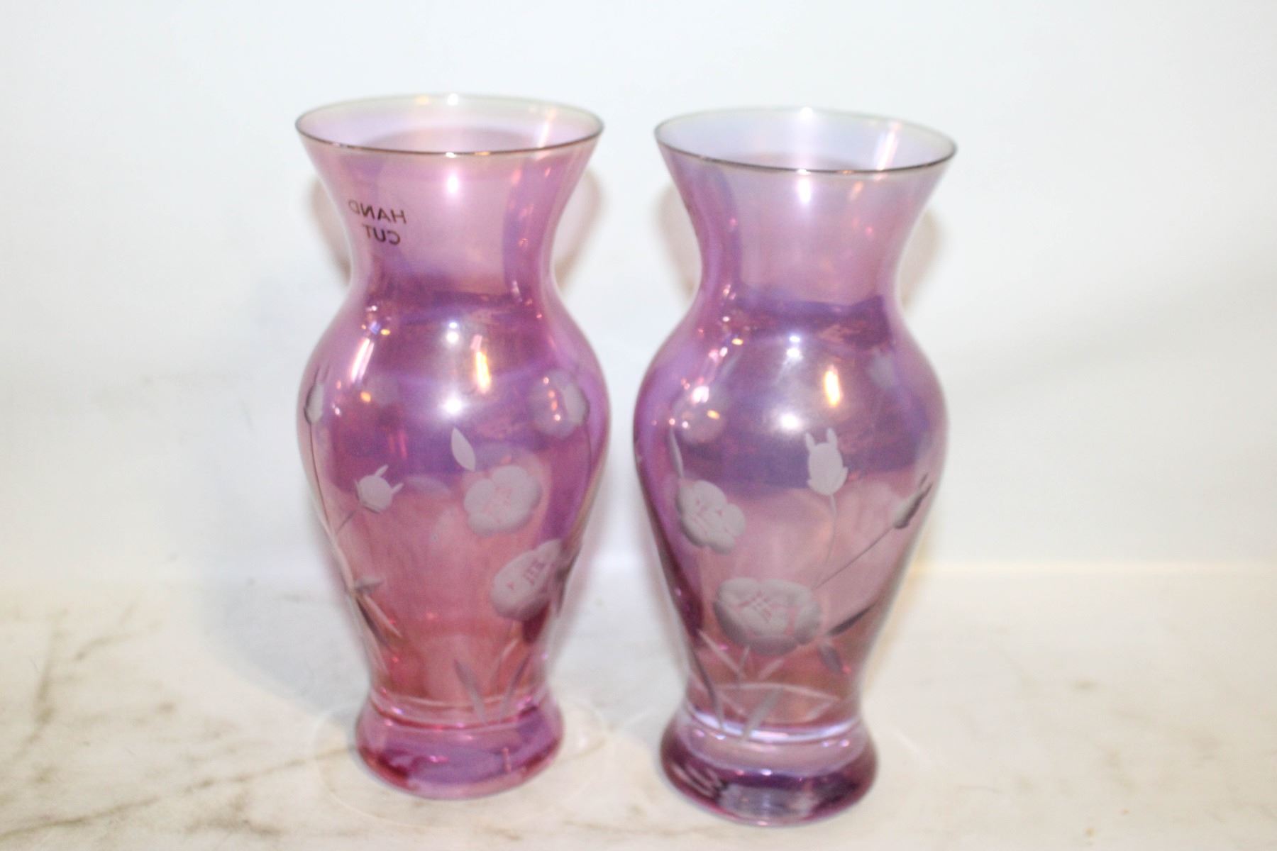 ROYAL DOULTON PAIR OF ETCHED BUD VASES