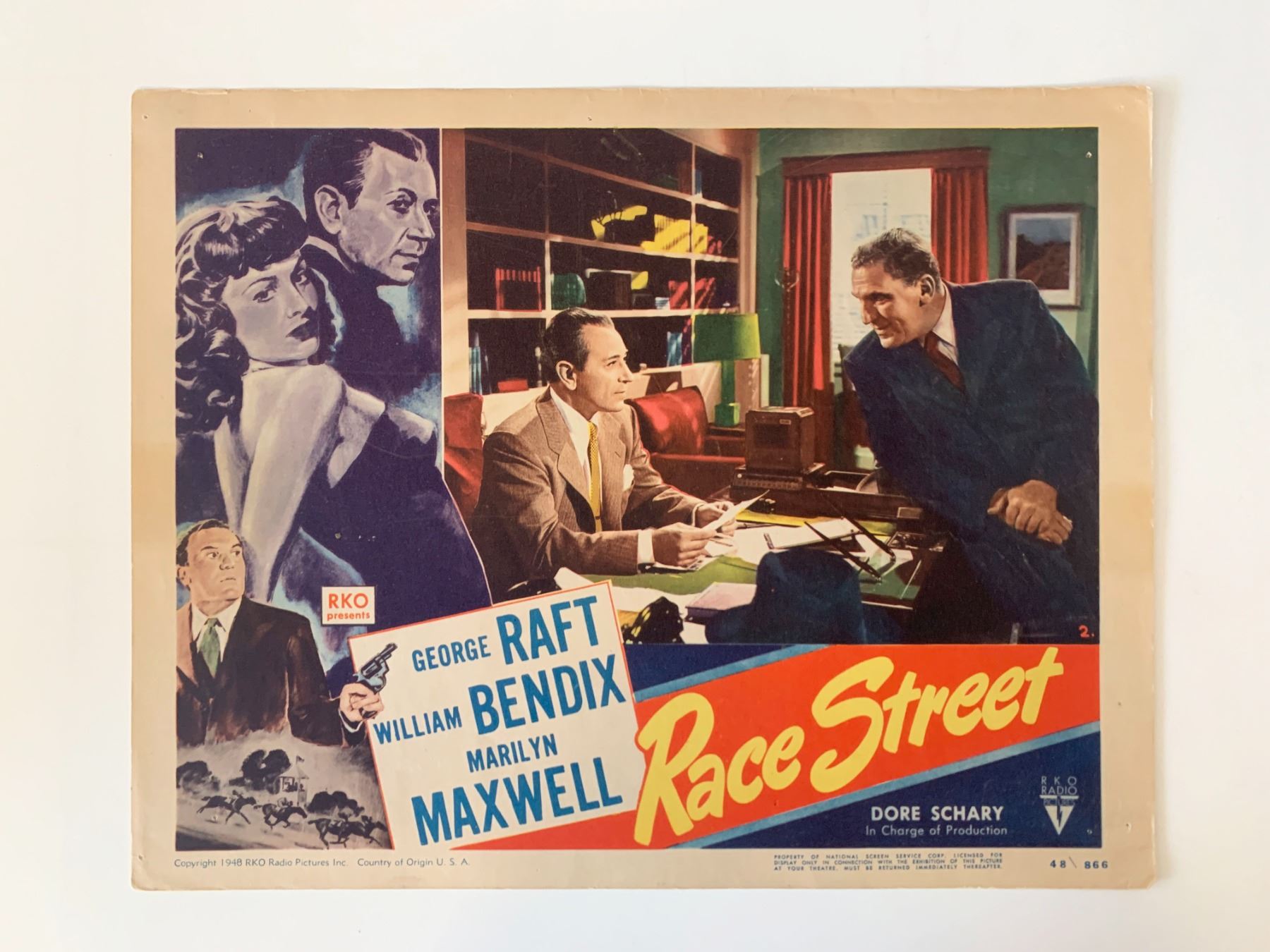 Race Street original 1948 vintage lobby card on heavy card stock. 11x14 inches