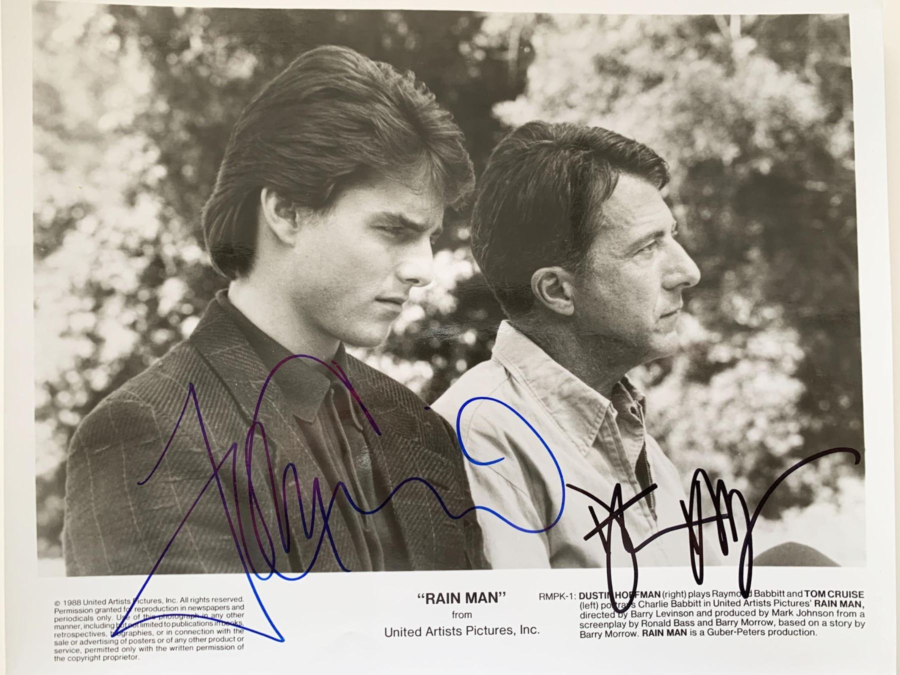 Rain Man 1988 signed movie photo autographed by Tom Cruise and Dustin Hoffman. 8x10 inches