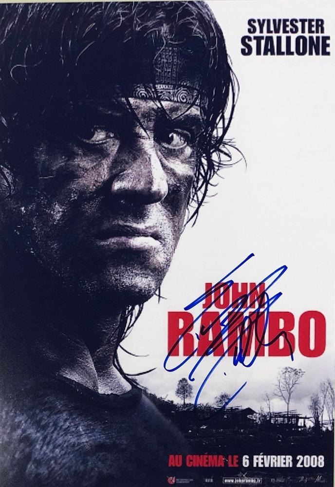 Rambo Sylvester Stallone facsimile signed French movie photo. 8x10 inches. This item is a reprint of an original autograph