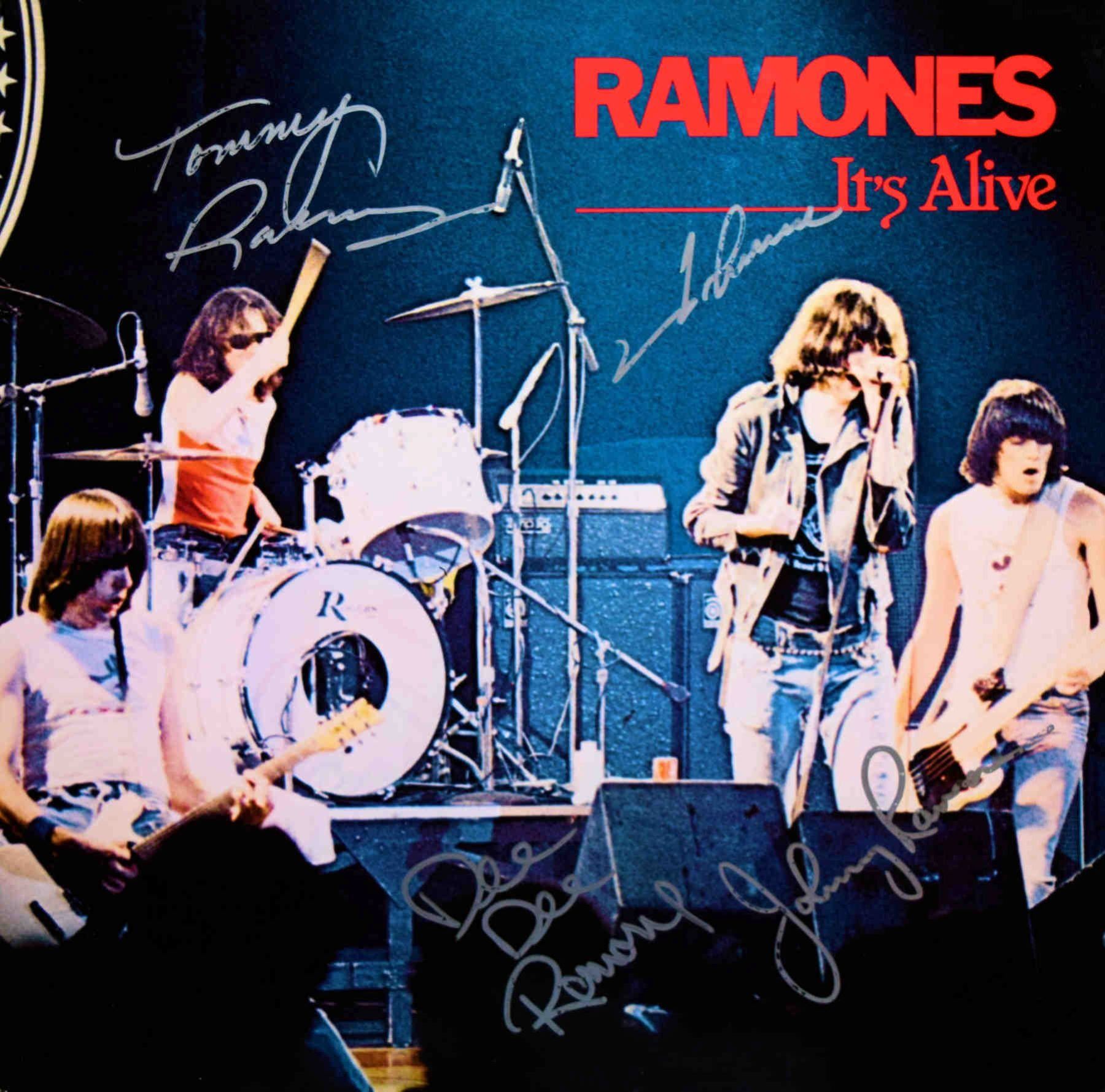 Ramones 1979 It’s Alive album Signed: Dee Dee Ramone, Johnny Ramone, Joey Ramone & Tommy Ramone.