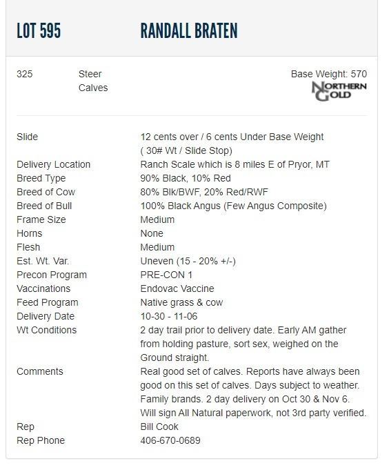 Randall Braten - 325 Steers; Base Weight: 570