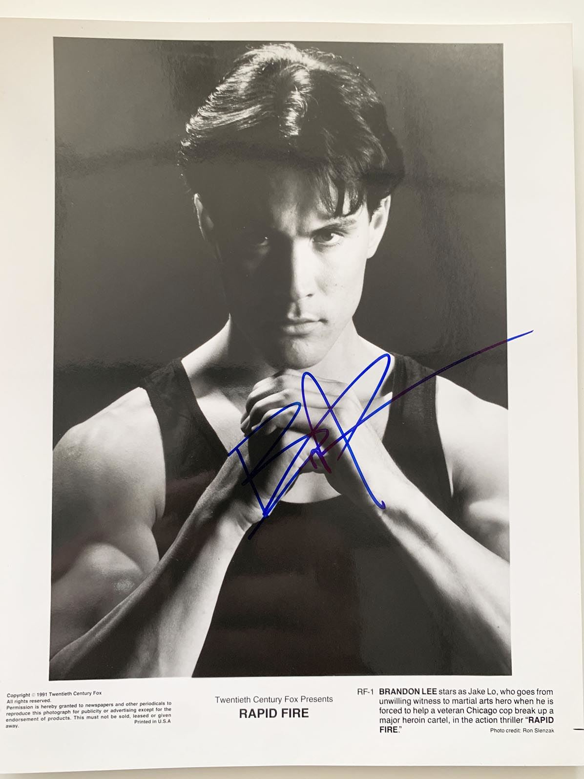 Rapid Fire signed movie photo autographed by Brandon Lee. 8x10 inches