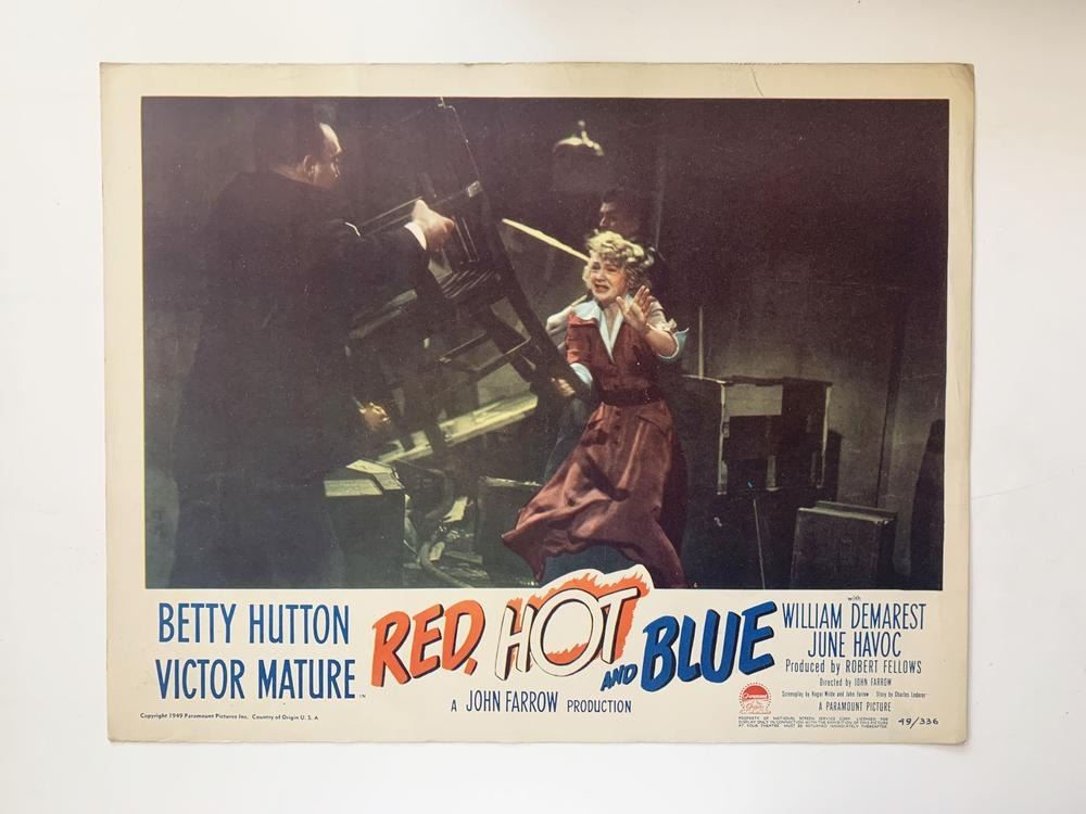 Red, Hot and Blue original 1949 vintage lobby card on heavy card stock. 11x14 inches