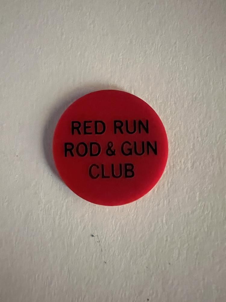 Red Run Rod & Gun club plastic disc. 1x1 inch