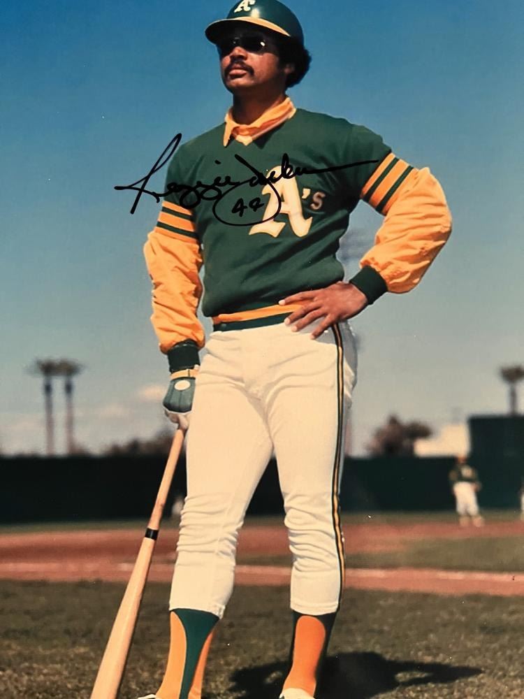 Reggie Jackson signed photo. 8x10 inches. This item is a reprint of an original autograph
