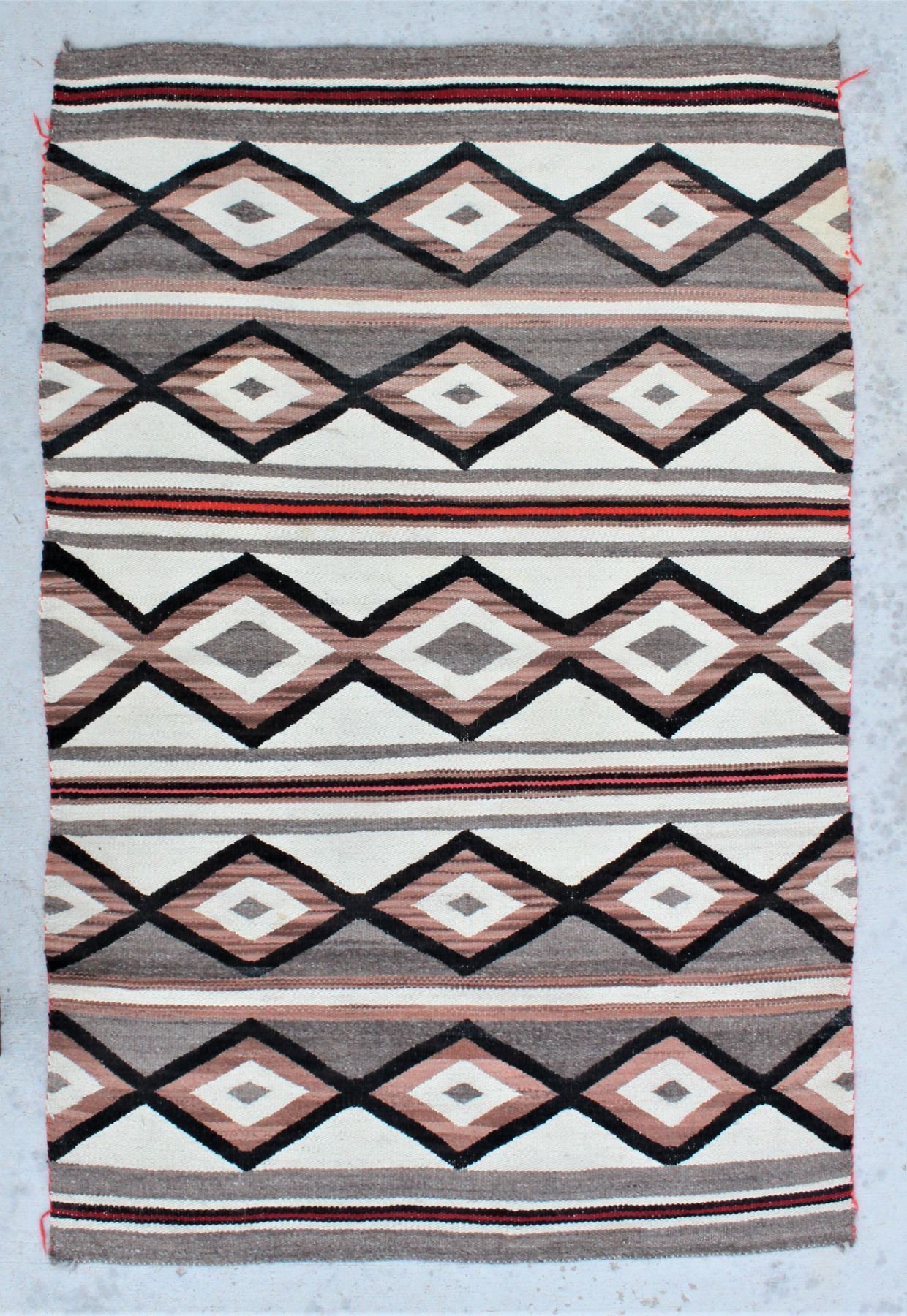 Bright colored 1930's banded rug with running diamond pattern. Dimensions 41" x 64".