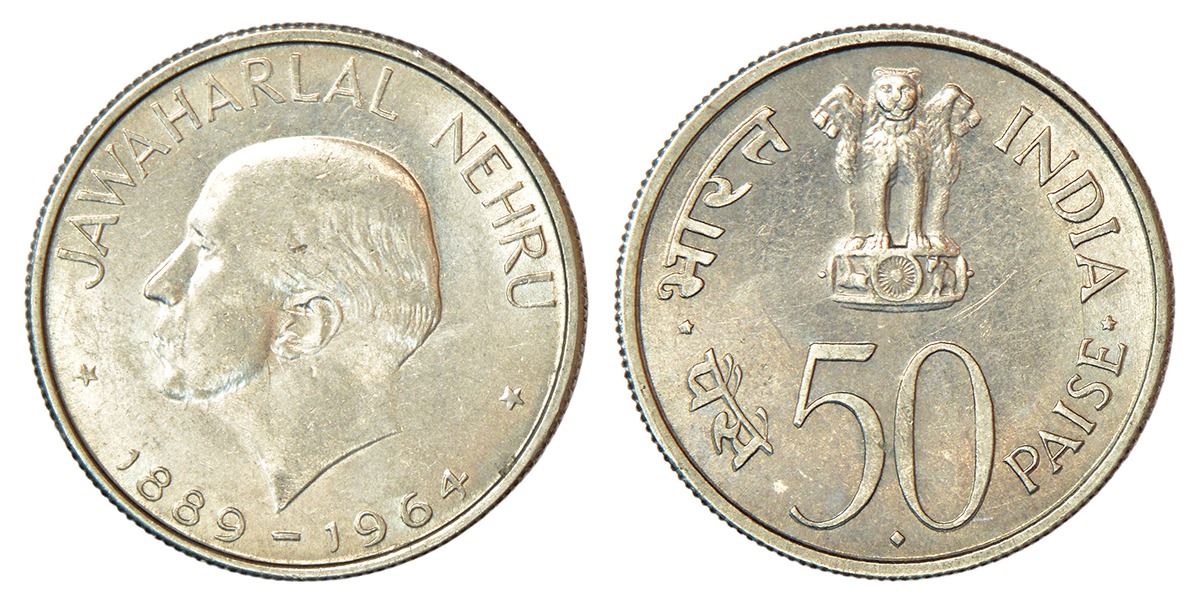 Republic India: 1964, Jawaharlal Nehru, UNC, nickel 50 paisa, 4.98g, Bombay mint,