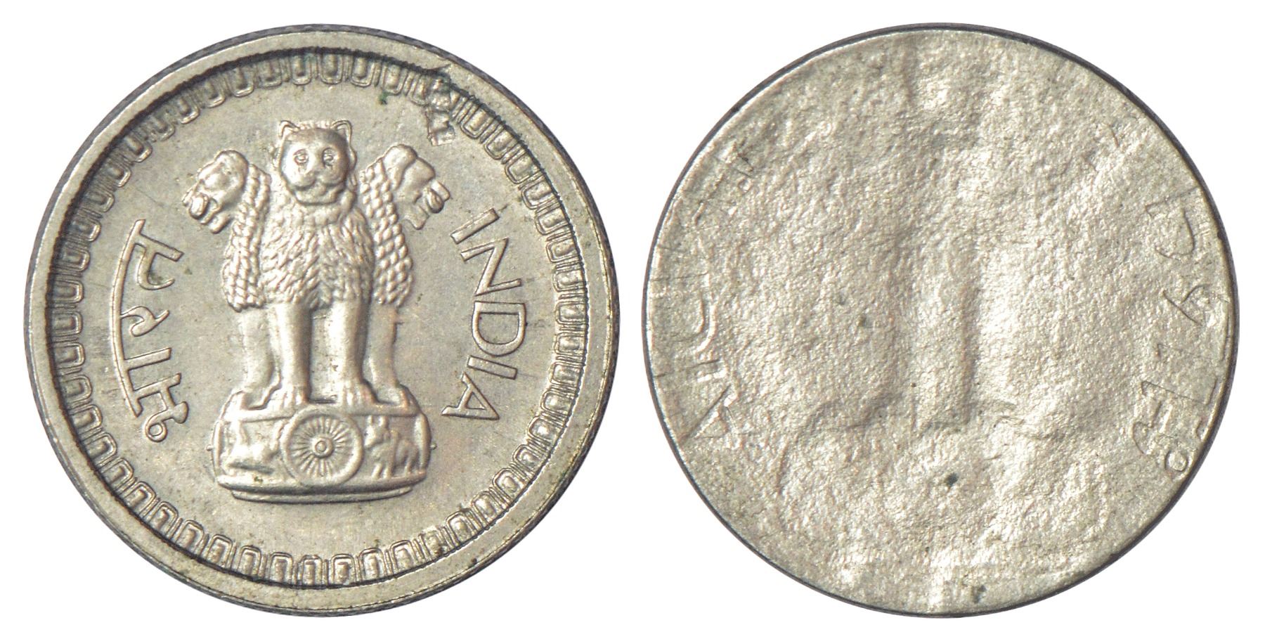 1972, copper-nickel, 25 paise, Bombay mint, obverse brockage (lakhi) on reverse, 2.50g.