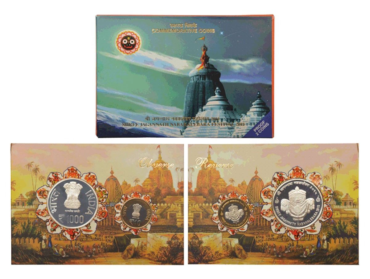 2015, Shree Jagannath Nabakalebara Festival, Proof set of 2 coins, 1000 rupees and 10 rupees, Mumbai mint, in original mint packing.