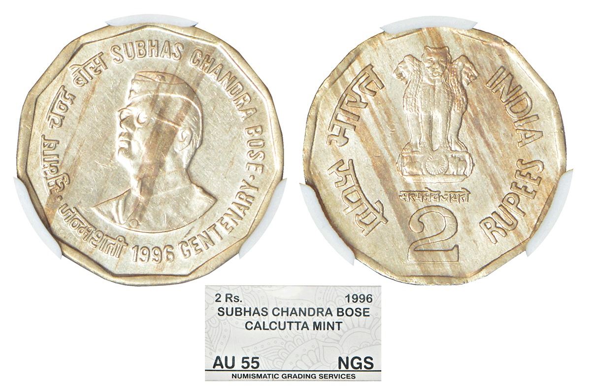 Republic of India: 1996, Subhas Chandra Bose, cupro-nickel 2 rupees, Calcutta mint, KM 130.3.