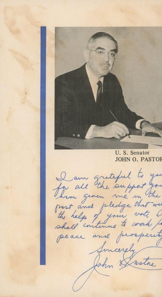 John O. Pastore signed letter