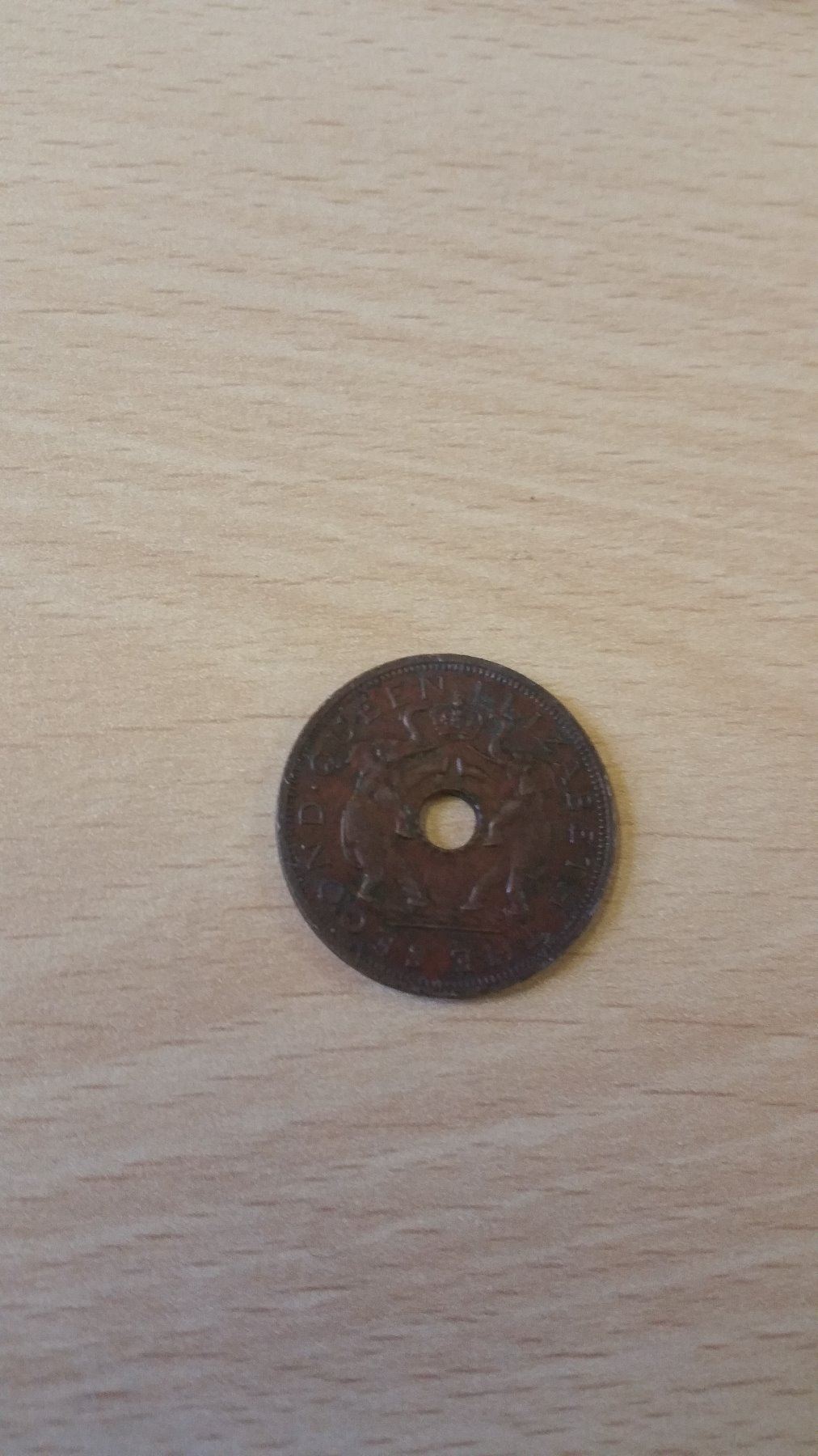 Obverse: Hole in center and crown flanked by elephants