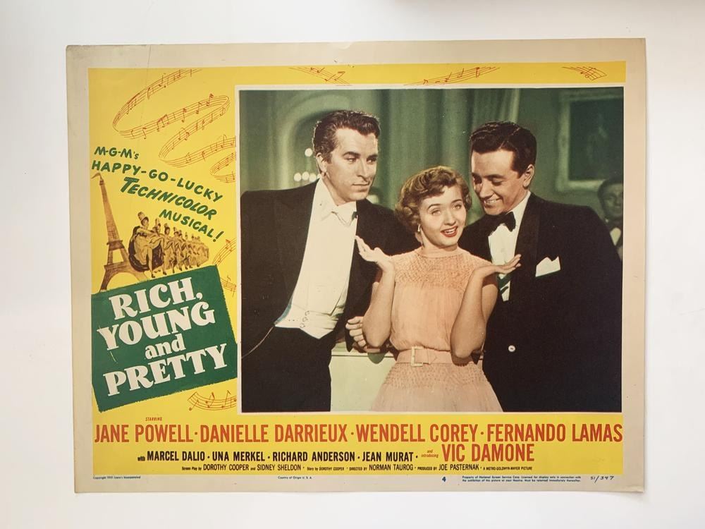 Rich, Young and Pretty original 1951 vintage lobby card on heavy card stock. 11x14 inches