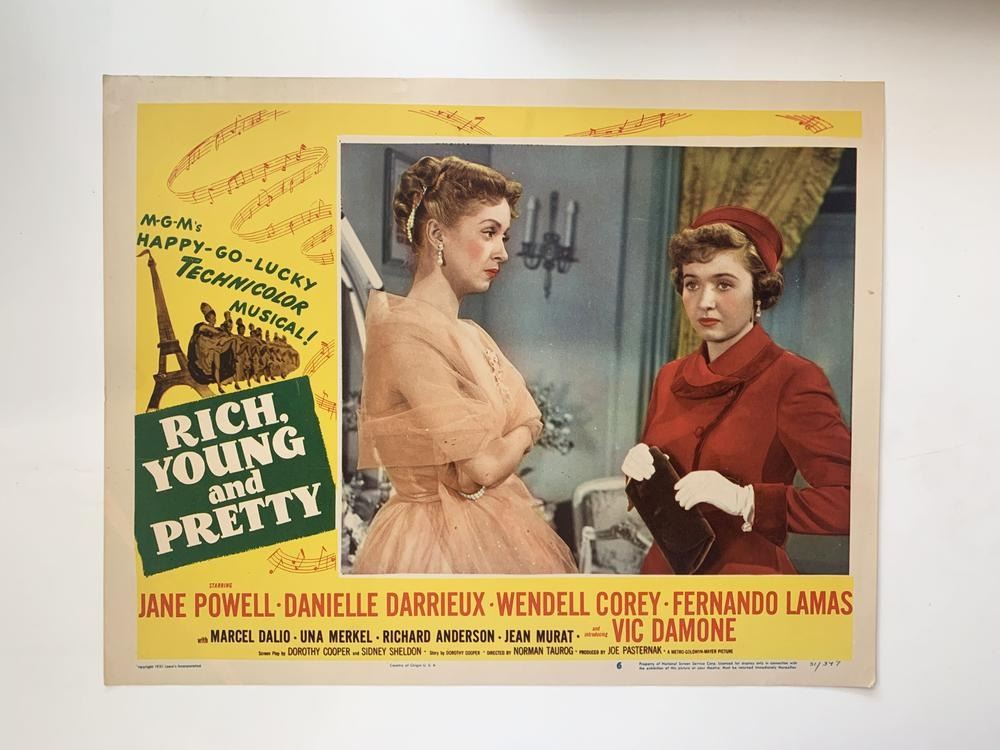 Rich, Young and Pretty original 1951 vintage lobby card on heavy card stock. 11x14 inches