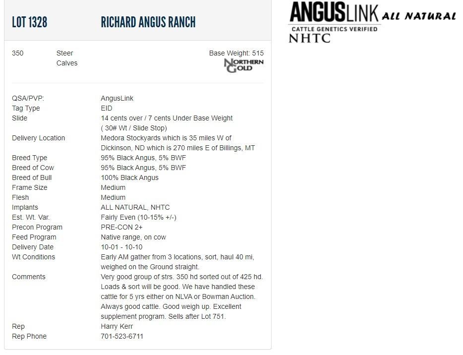 Delivery Location: Medora Stockyards which is 35 miles W of Dickinson, ND