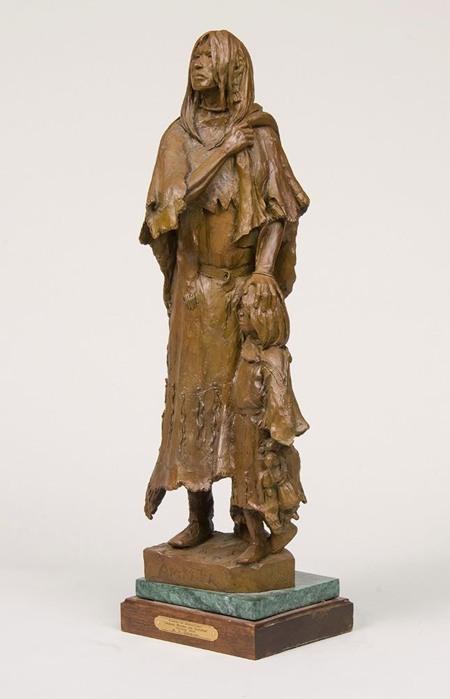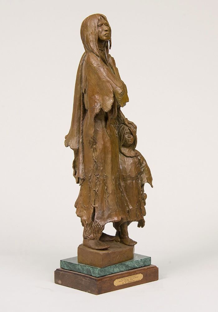 Artist: Richard Greeves; Title: Arikara Mother and Daughter; Medium: Bronze, cast 22/30; Dimensions: 26 inches overall height; Signed: Signed and dated 2004; Framed/Base: 26 x 8.5 x 6.5 inches - 36 lbs.