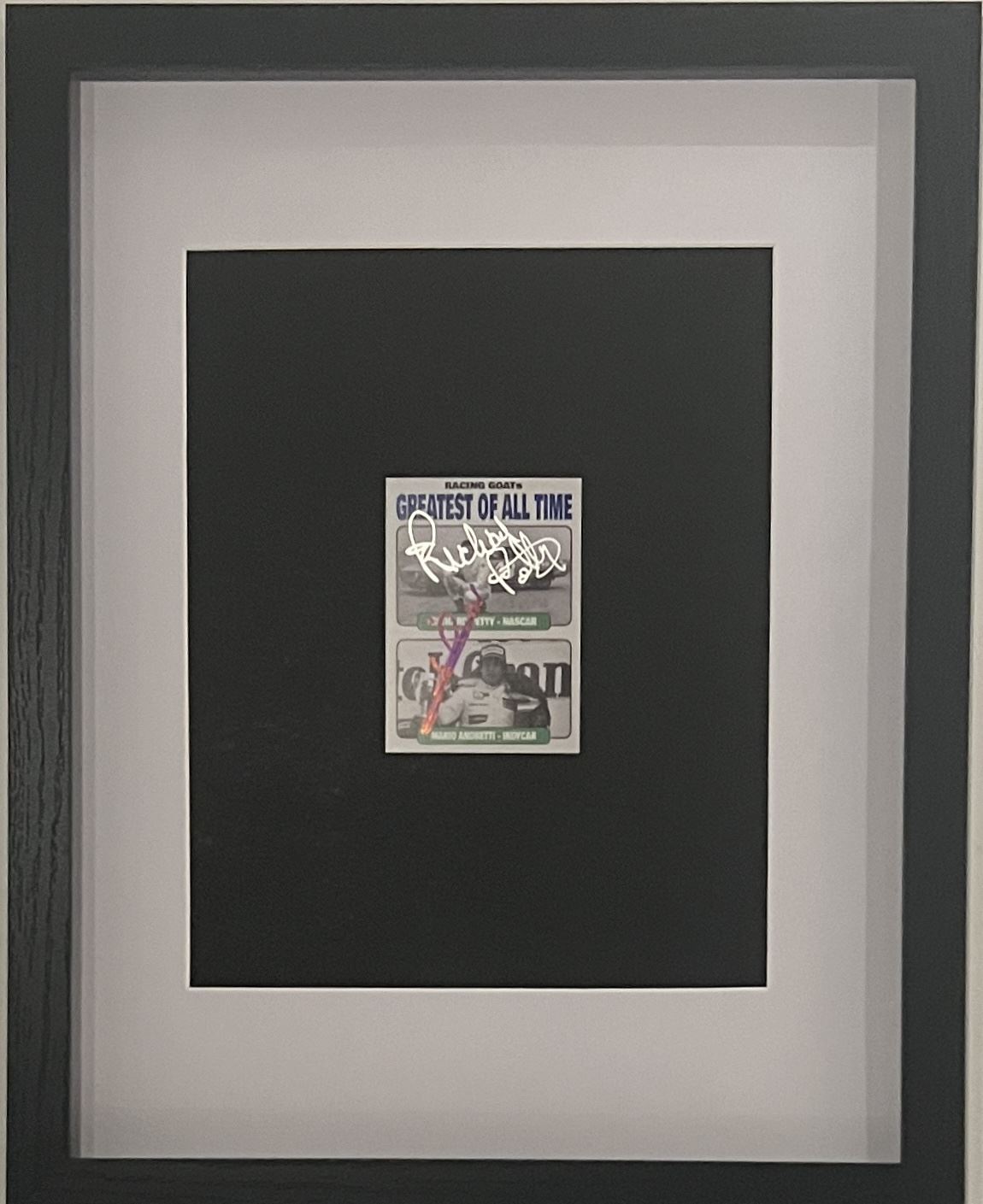 Richard Petty / Mario Andretti signed trading card. 2x3 inches