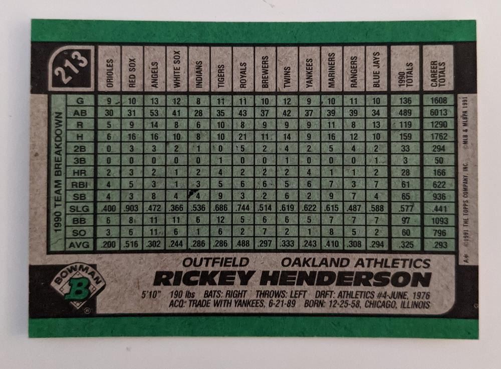 Rickey Henderson Oakland Athletics Bowman Baseball Card