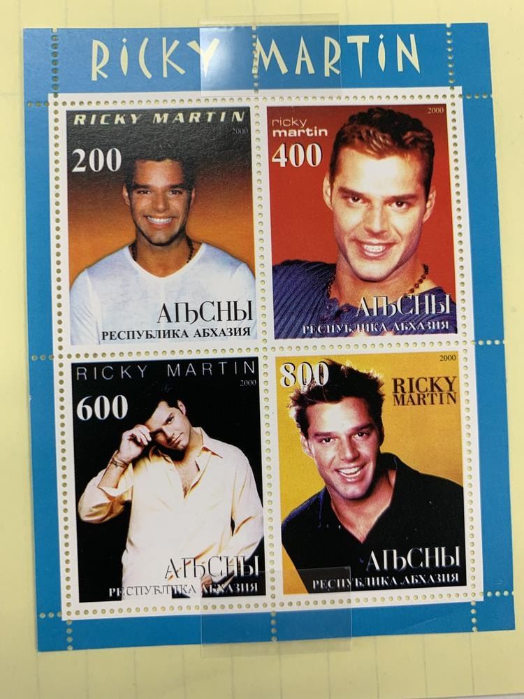 This is a set of 4 Ricky Martin commemorative stamp set.
