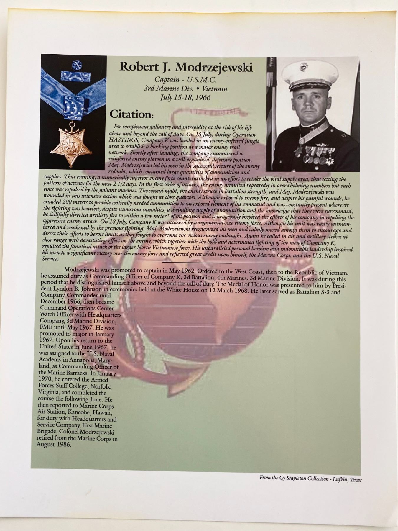 Robert J. Modrzejewski Medal Of Honor Citation. 9x11 inches