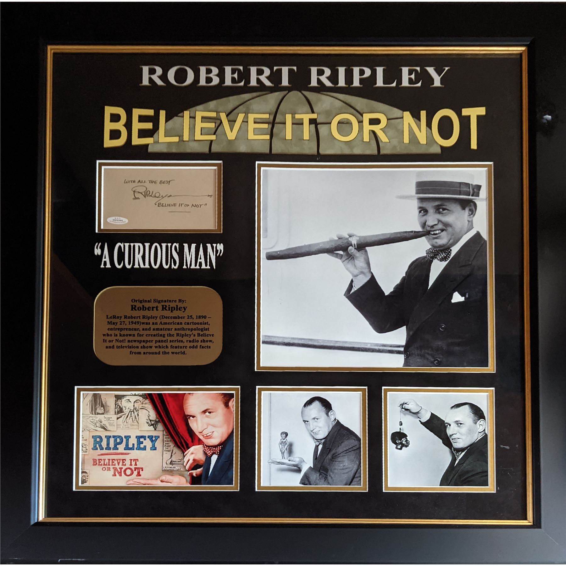 Robert Ripley original signature collage. Custom framed, AAU authenticated. 27x29 inches
