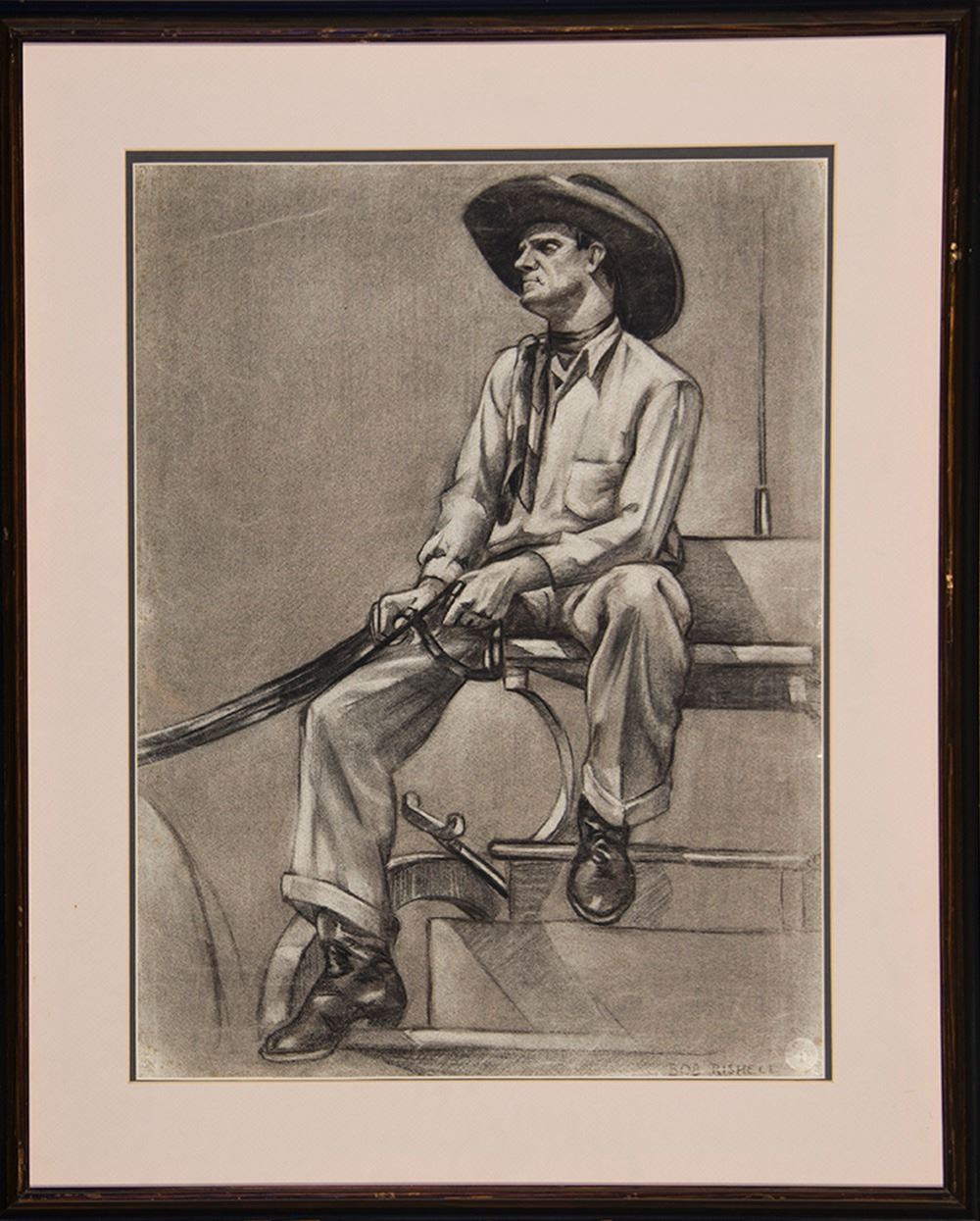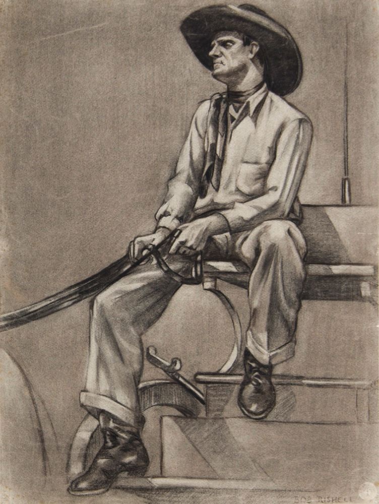 Artist: Robert Rishell; Title: The Driver; Medium: Charcoal; Dimensions: 25 x 18 1/2 inches; Signed: Signed lower right; Framed/Base: 34 x 27 inches