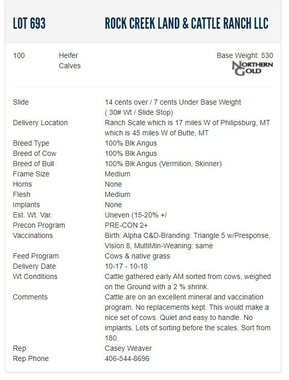 Rock Creek Land & Cattle Ranch LLC - 100 Heifers; Base Weight: 530