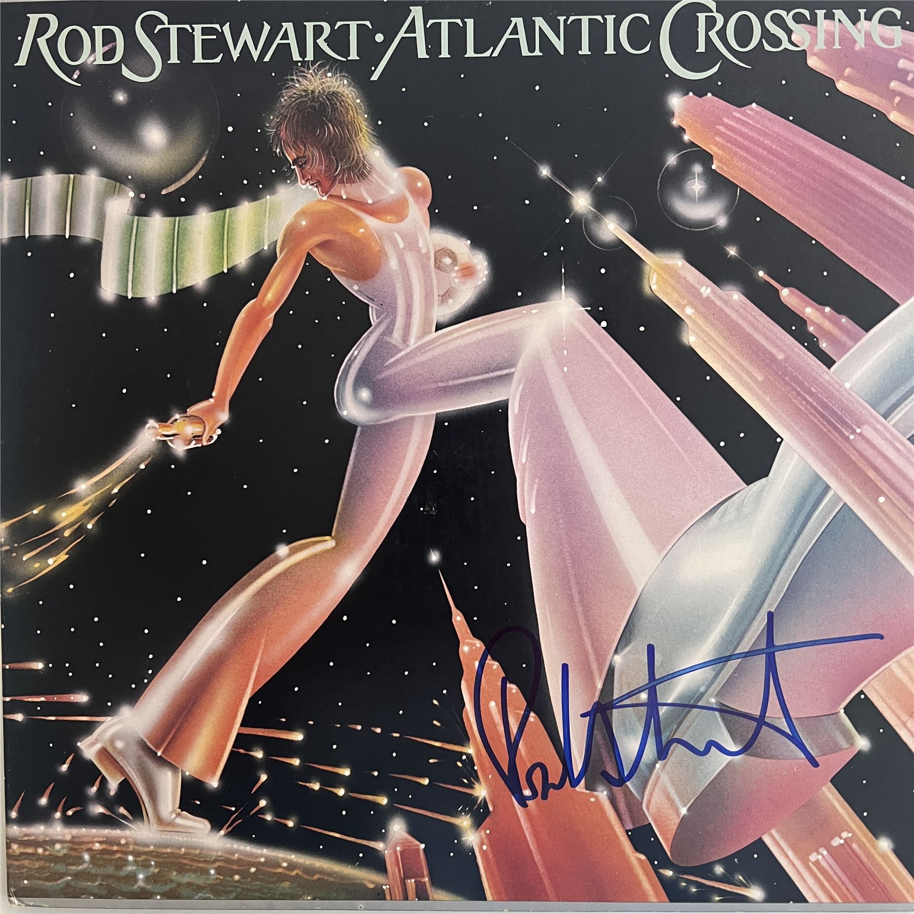 Rod Stewart Atlantic Crossing signed album. 12x12 inches vinyl included