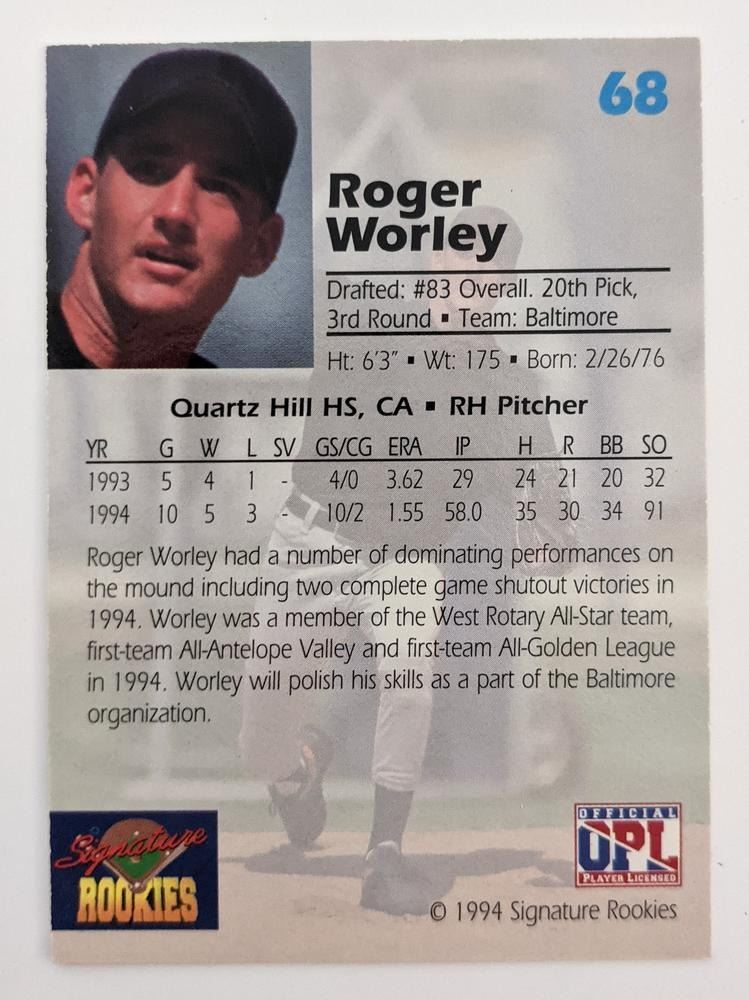 Roger Worley Signed Baseball Trading Card - Signature Rookies # 68 1994 - Number 1,938 of 7,750