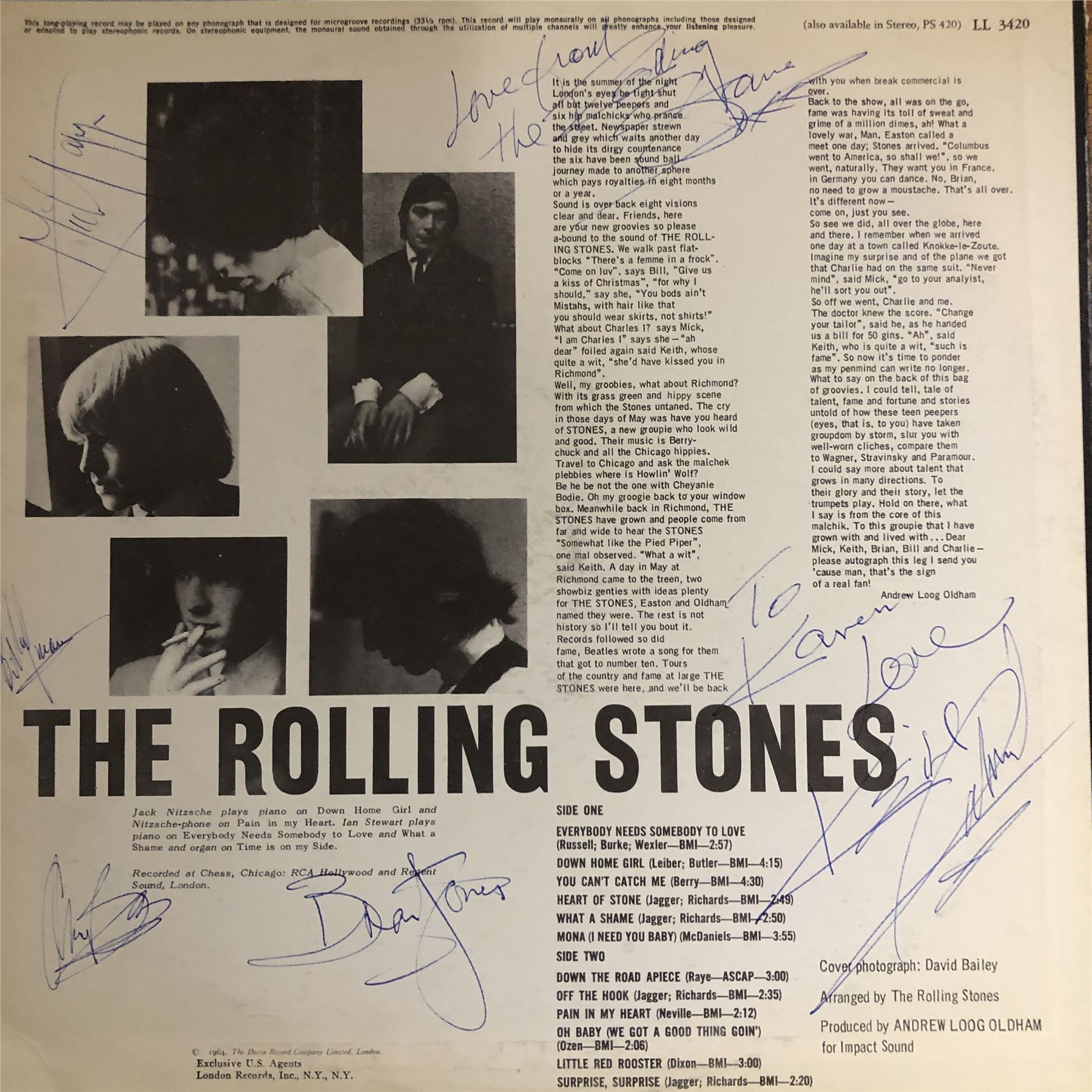 Rolling Stones NOW! album signed by Mick Jagger, Keith Richards, Brian Jones, Bill Wyman and Charlie Watts