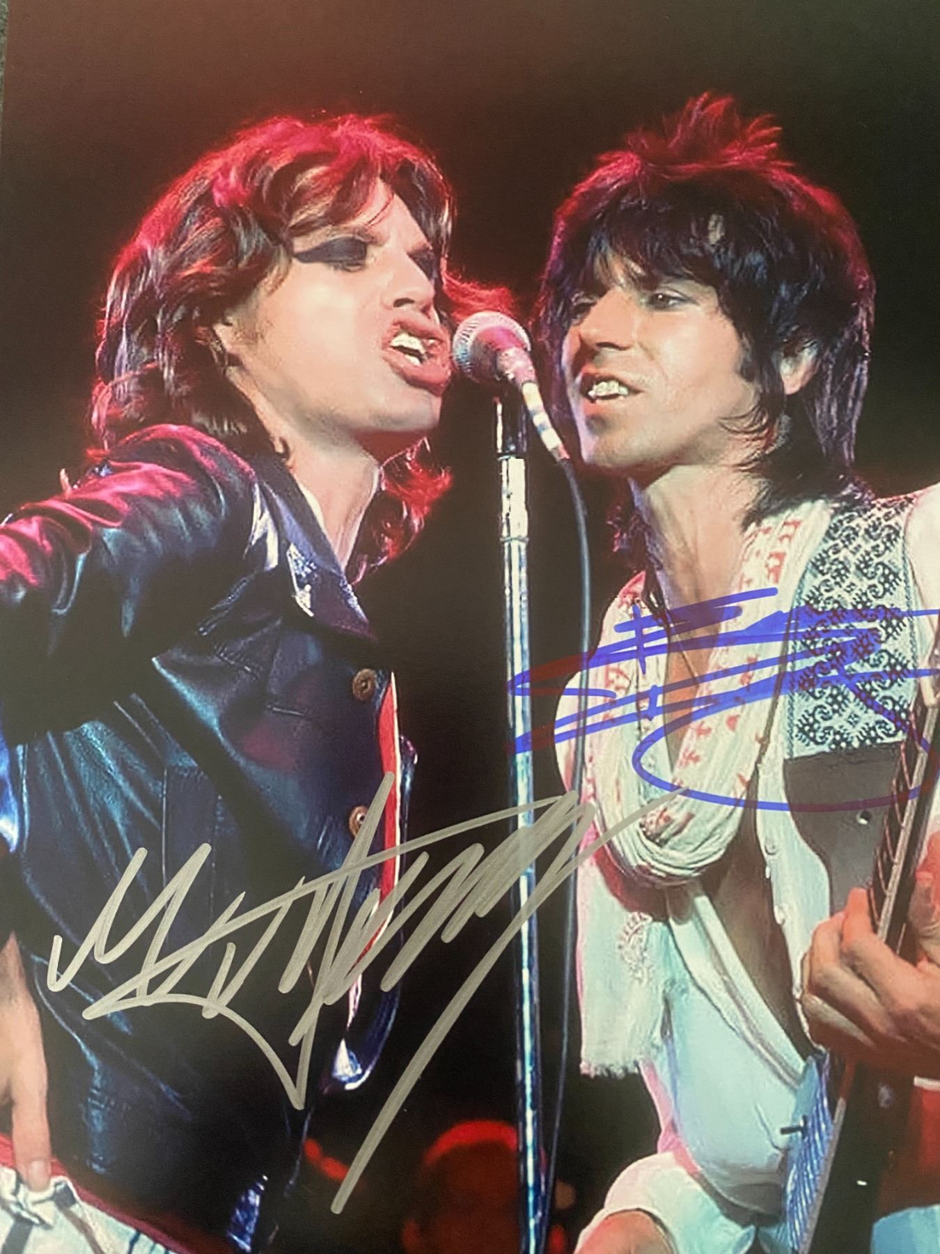 Rolling Stones band signed photo autographed by Mick Jagger and Keith Richards. 8x10 inches
