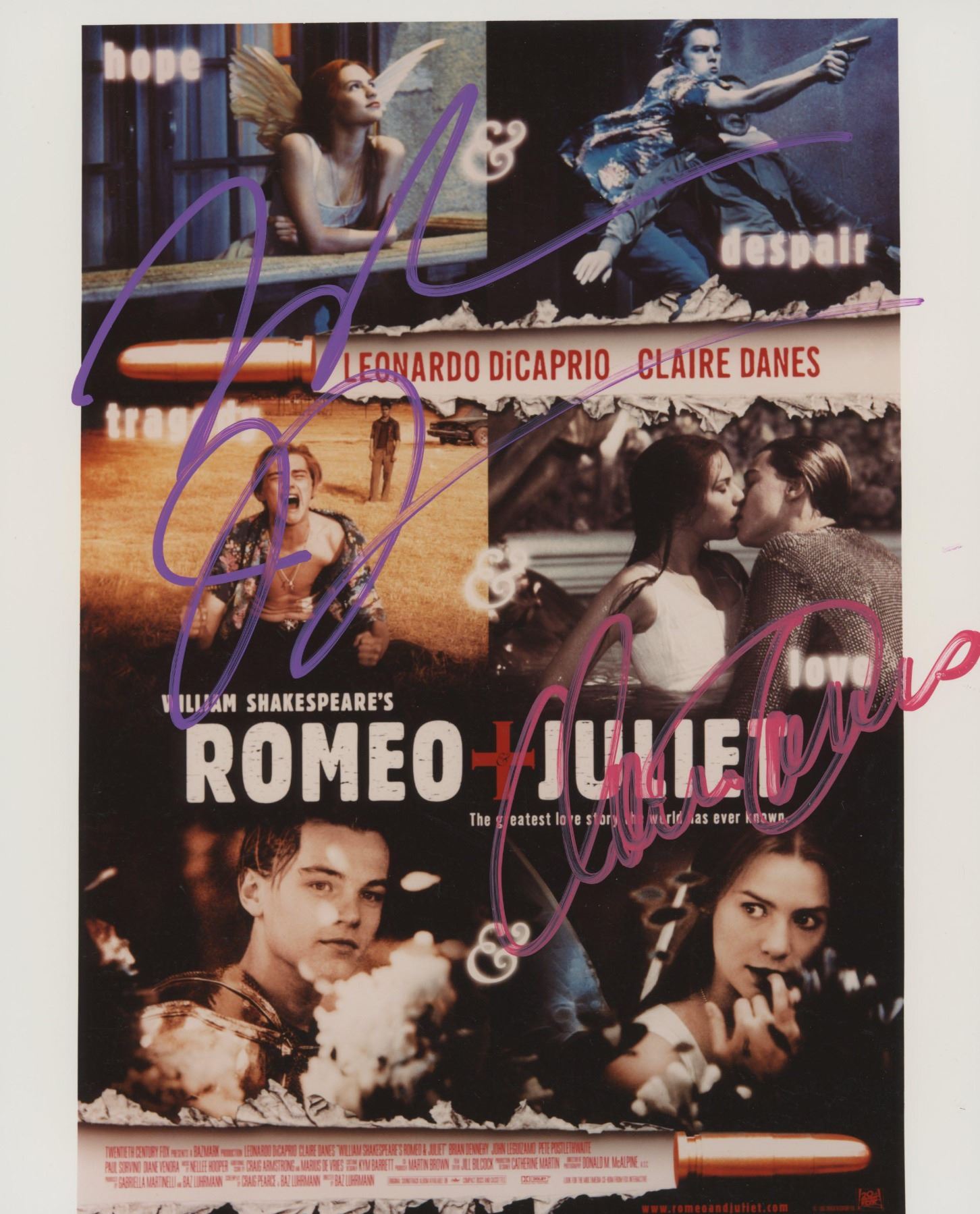 Romeo + Juliet signed movie photo autographed by Leonardo DiCaprio and Claire Danes. 8x10 inches