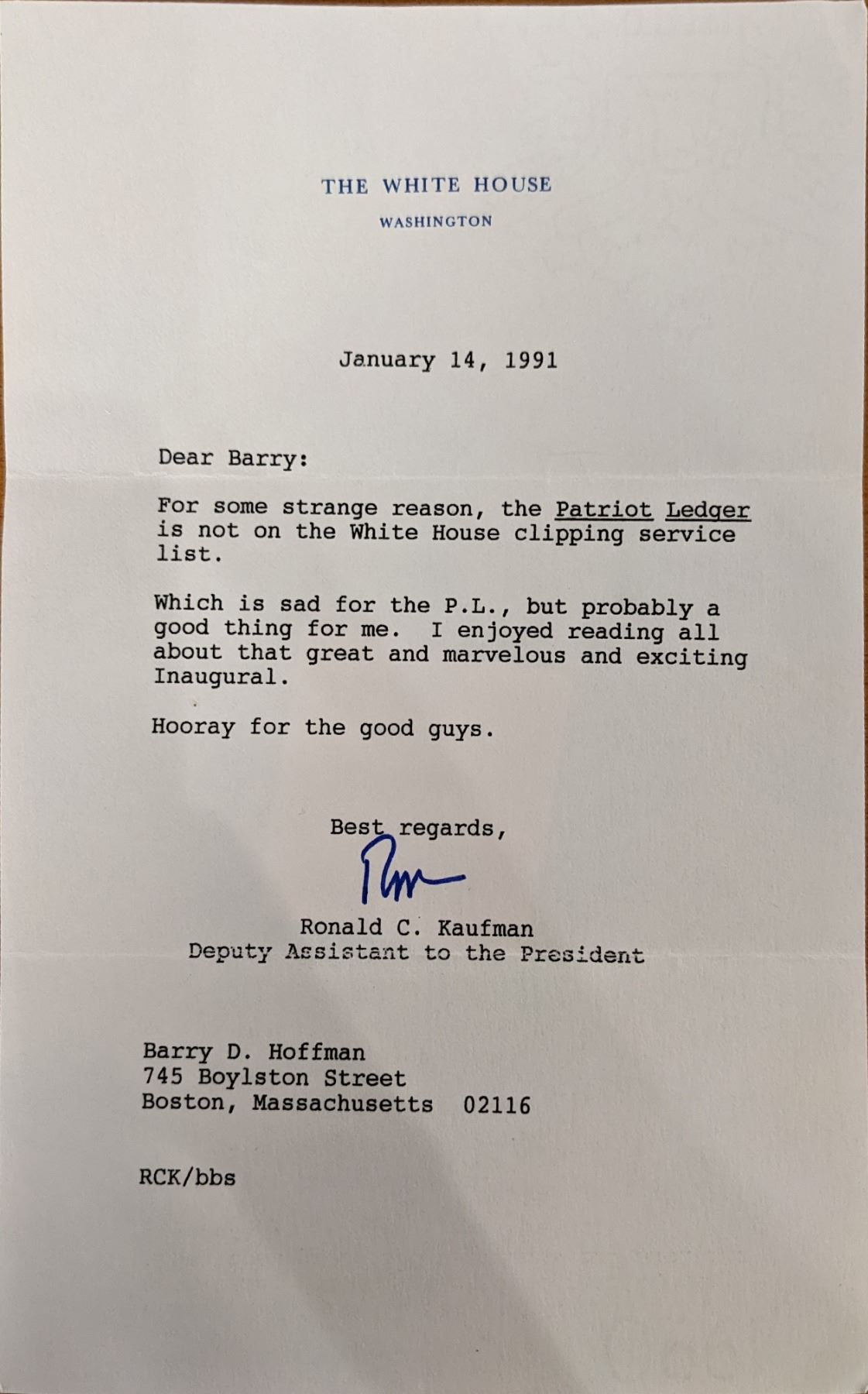 Ronald C. Kaufman Signed White House Note. 6x9 inches