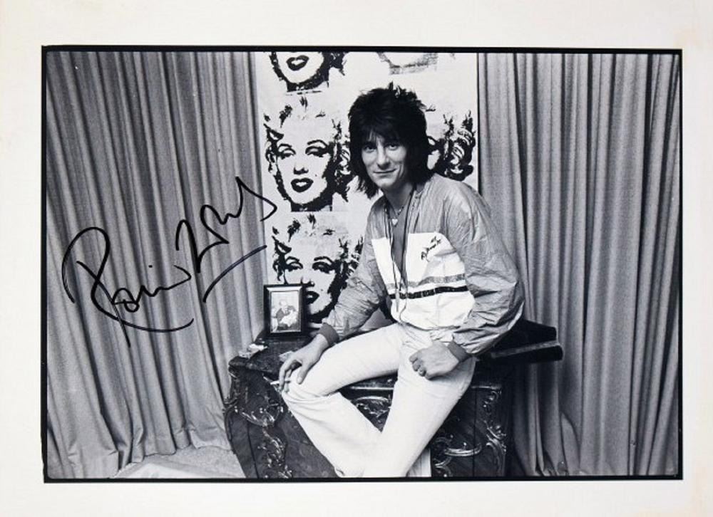 8 in. by 10 in. Black and white promotional photo autographed by Ronnie Wood.
