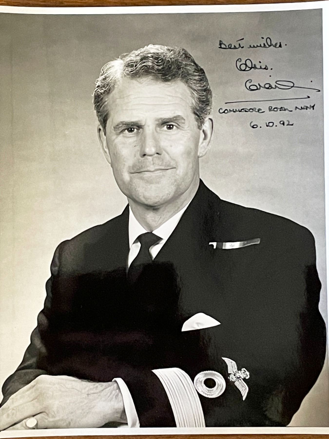 Royal Navy Commodore Chris Greir signed photo. 8x10 inches
