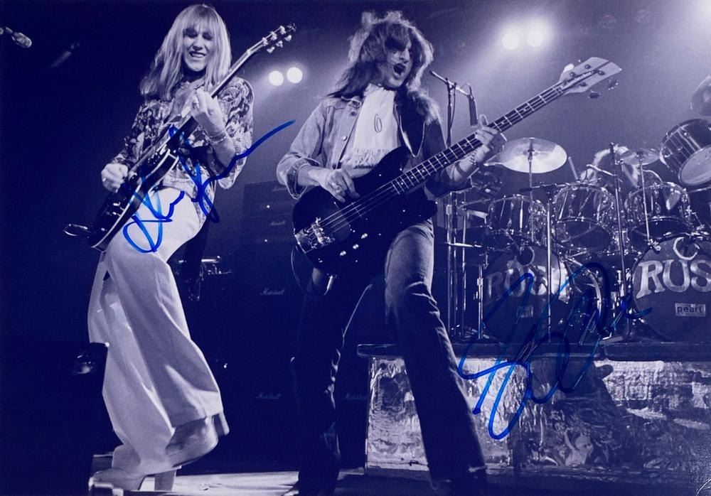 Rush band facsimile facsimile signed photo autographed by Geddy Lee and Alex Lifeson. 8x10 inches. This item is a reprint of an original autograph
