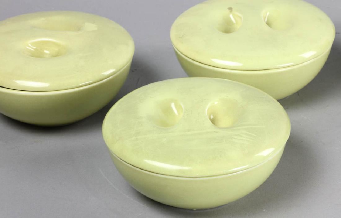 Partial set of Russel Wright 'Iroquois' china, to include: (3) 5 1/4" bowls; (7) 3 3/4" diameter cups; (3) 5 1/4" bowl lids. Provenance: West Palm Beach, Florida estate.
